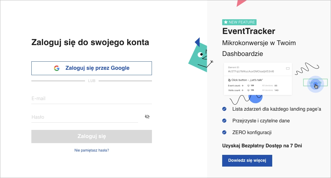Na dobry początek wypróbuj Landingi za darmo – podczas 14-dniowego darmowego okresu próbnego zostaniesz przeprowadzony przez wszystkie zakładki i funkcjonalności platformy.