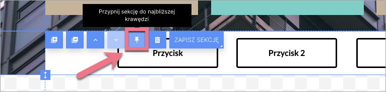 7. Kliknij w sekcję, która ma być przypięta. W menu podręcznym sekcji kliknij ikonę pinezki.