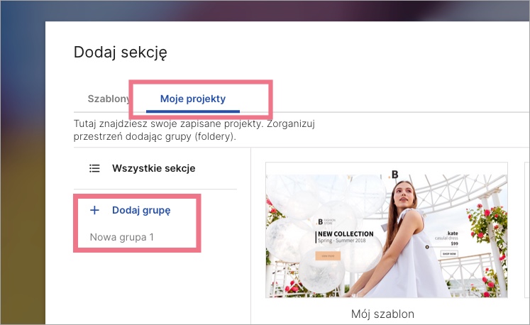 Moje projekty – własne szablony sekcji