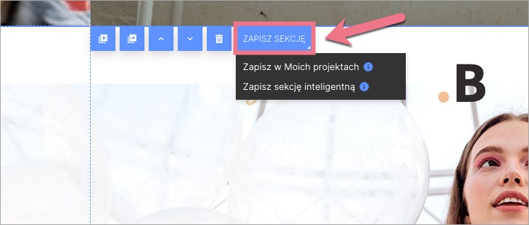 1. Kliknij w wybraną sekcję, wybierz Zapisz w Moich projektach i nadaj nazwę szablonowi. W tym miejscu możesz także zapisać sekcje jako Smart Sekcję.