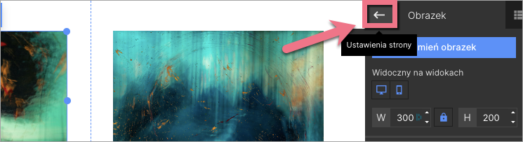 Podczas edycji możesz wrócić do Ustawień strony, klikając strzałkę: