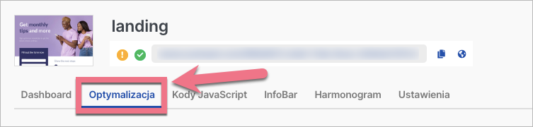 1. Przejdź do Dashboardu testowanego landing page’a i wejdź w zakładkę Optymalizacja.