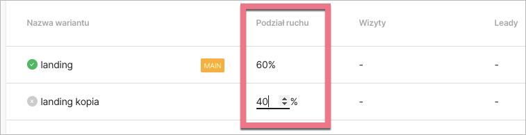 Domyślnie ruch jest rozdzielony równomiernie pomiędzy wszystkie warianty.