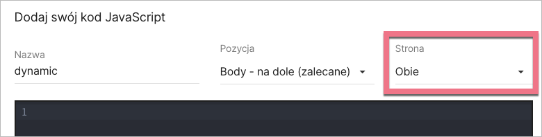 Do landing page’a dodaj kod JavaScript, który podany jest powyżej. Dodaj go do obu stron.