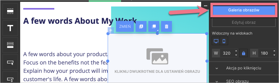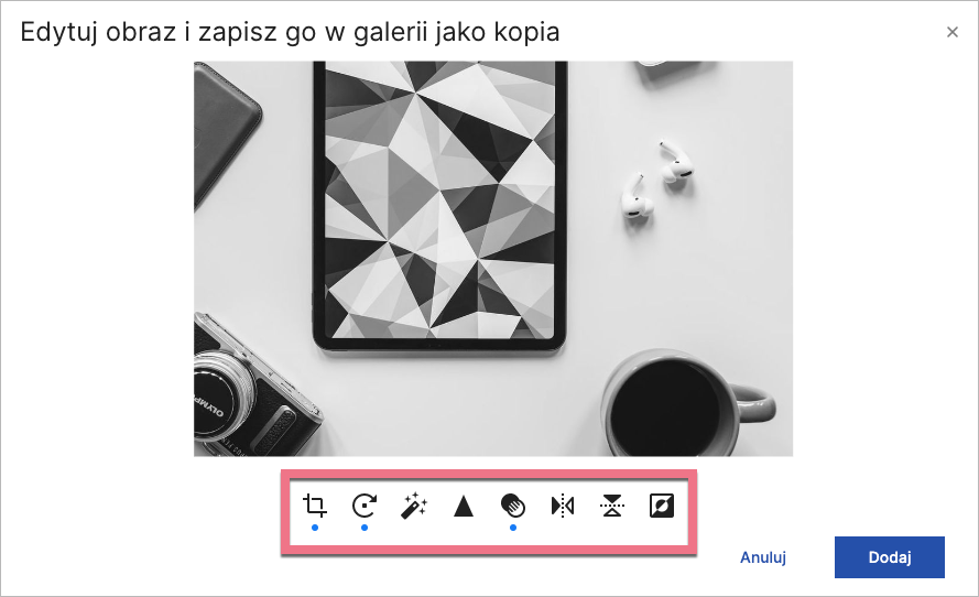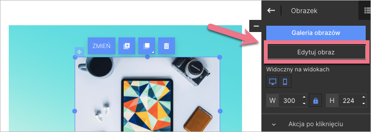 Do trybu edycji obrazka przejdziesz także po kliknięciu Edytuj obraz w edytorze.