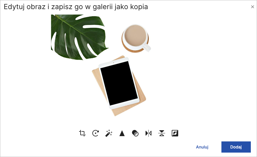 2. W opcji Edytuj obraz pod obrazkiem znajdziesz wszystkie podstawowe opcje edycji obrazów. Po zakończeniu edycji kliknij Dodaj.