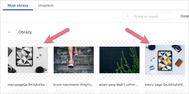 Uploadcare to narzędzie do edycji i ładowania obrazów z poziomu galerii widgetu Obrazek. Możesz dowolnie edytować wszystkie obrazy w Twojej galerii, łącznie z darmowymi obrazami Unsplash. Wystarczy się zalogować i dodać wybrane pliki.