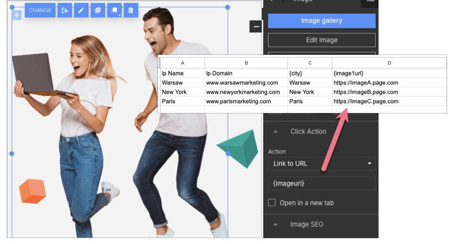 Linki obrazów dla landing page’y programatycznych ustawisz za pomocą zmiennych –adresy URL będą automatycznie aktualizowane na podstawie danych z pliku CSV.