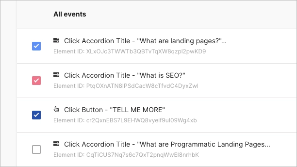 EventTracker now supports tracking interactions with accordion elements. You can now monitor each time a user clicks on an accordion section.
