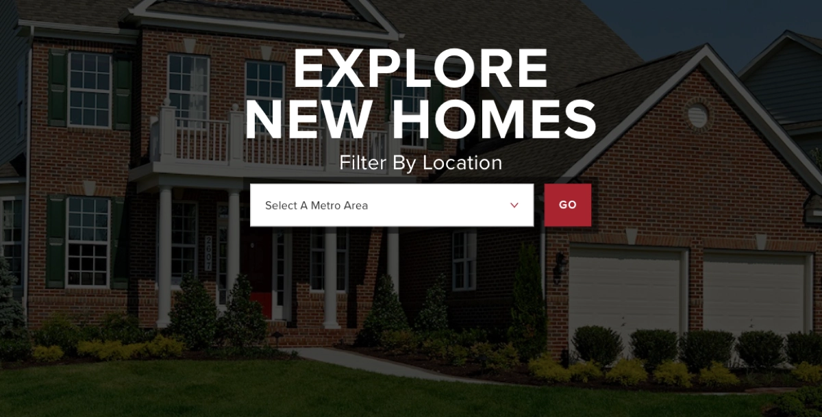Um dos melhores real exemplos de landing pages de imóveis é a Beazer. A página deles apresenta um design atraente e direto, que serve efetivamente ao seu propósito como uma ferramenta de geração de leads. Um título claro mostra aos visitantes o que eles podem esperar. A página foi projetada para envolver os compradores em potencial e orientá-los sem problemas no processo de encontrar uma nova casa.