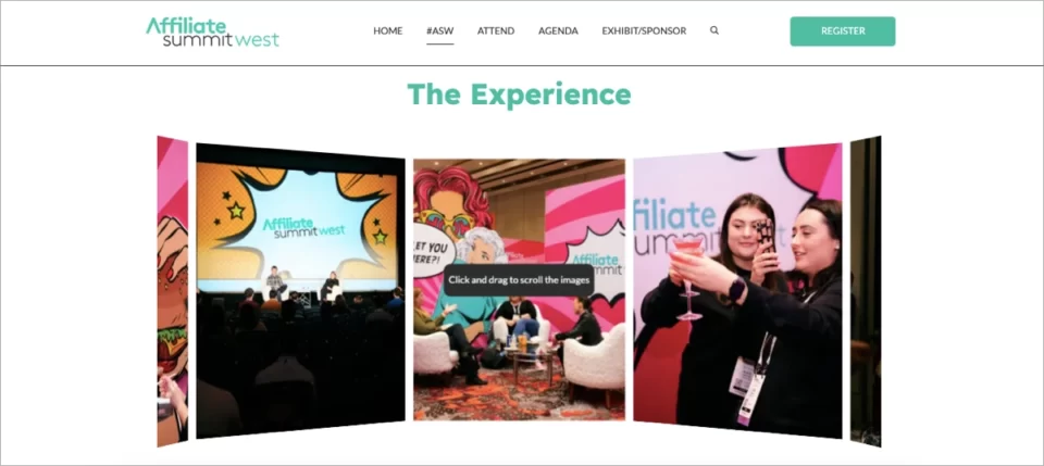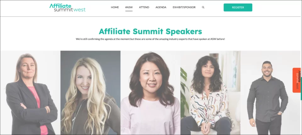 Um dos melhores event exemplos de landing page é o Affiliate Summit West, que é o principal em páginas de alta conversão. Sua landing page foi criada para promover um dos maiores eventos de marketing de afiliados do mundo e atrair uma ampla gama de participantes, incluindo afiliados, anunciantes, vendedores de comércio eletrônico, redes e fornecedores de tecnologia.
