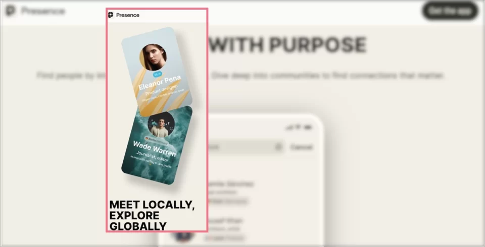 Rolar para baixo leva a descrições informativas. Os botões de CTA que levam ao formulário de inscrição estão bem posicionados, no canto superior direito estratégico e na parte inferior da página. As seções são bem elaboradas para orientar os visitantes desde a atração, passando pelo interesse, até a participação na comunidade.