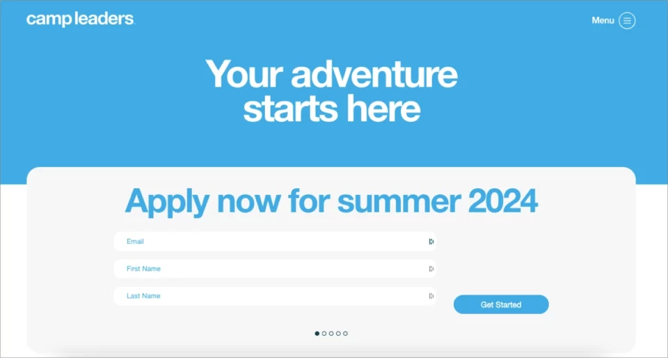 O que é característico dessa landing page é a implementação de recursos visuais de alta qualidade, incluindo galerias inteiras de imagens e conteúdo informativo bem escrito. Além de alternativas de CTAs, um formulário on-line permite a coleta de informações essenciais sobre o visitante, o que é útil nas etapas subsequentes da estratégia de marketing.