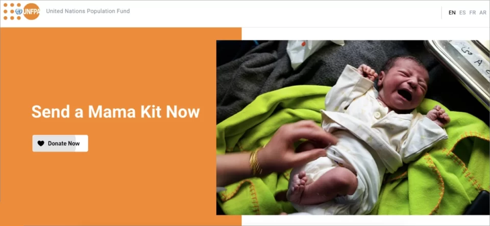 Tipo de CTA: botão de doação – excelente em termos de design, bem posicionado, com mensagem simples