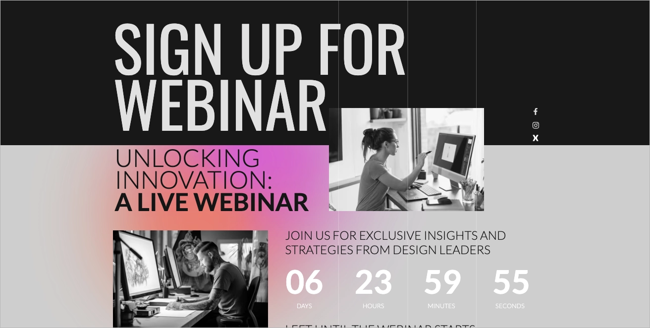 Crie seu webinar landing page com o modelo Designer Webinar & Countdown.