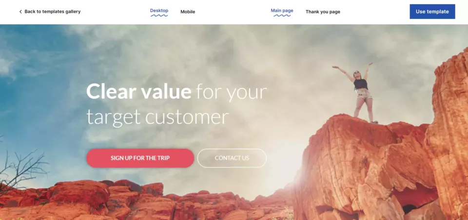 Crie uma landing page como a acima com este modelo da Landingi: Simple Upsell Page