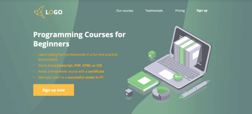 Crie uma landing page como a acima com este modelo Landingi: Plataforma de educação