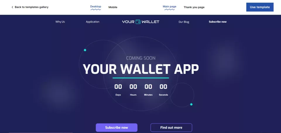 Crie uma landing page como a acima com este modelo Landingi: Money App