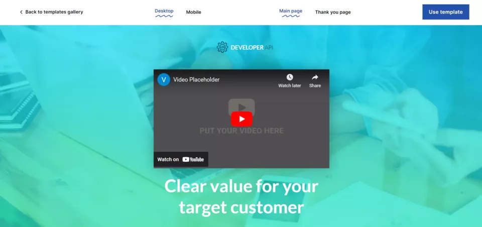Em vez de depender apenas de texto e imagens, essas landing pages usam vídeos para transmitir sua mensagem. As landing pages de vídeo são excelentes para apresentar aos usuários informações complexas sem sobrecarregar os visitantes com paredes de texto e mantê-los envolvidos.