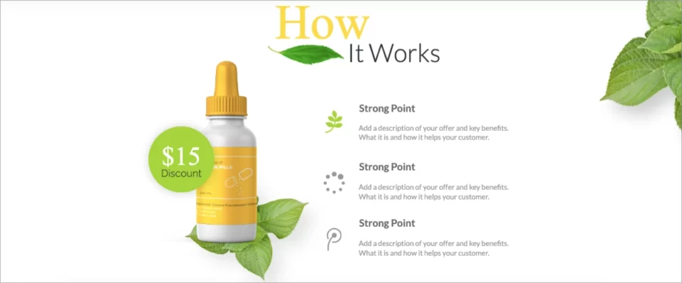 The Wellbel Supplements webpage is a prime product landing page example of a minimalist design that effectively highlights product benefits. By limiting text and focusing on high-quality images, the landing page draws the visitor’s attention to the product’s key features and benefits.