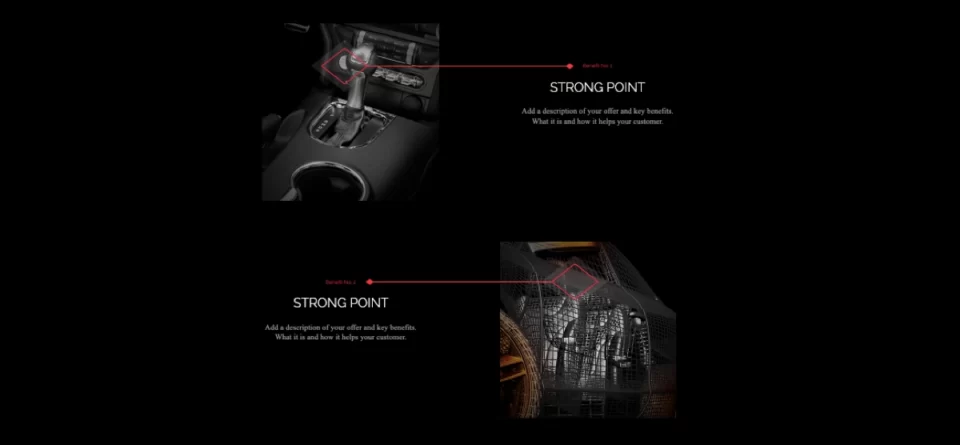 Landingi allows you to show all product benefits and features in a visually appealing way – just add a new benefits section, leverage visually catching icons, and write short, persuasive paragraphs to convince potential customers about your product’s quality.