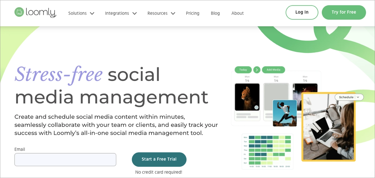 A sétima excelente ferramenta de marketing de mídia social é a Loomly, uma plataforma que simplifica o planejamento de conteúdo e a colaboração em equipe para profissionais de marketing de mídia social. Seu painel oferece suporte à criação, programação e aprovação de conteúdo, o que a torna uma escolha sólida para agências e equipes de marketing que gerenciam várias contas.